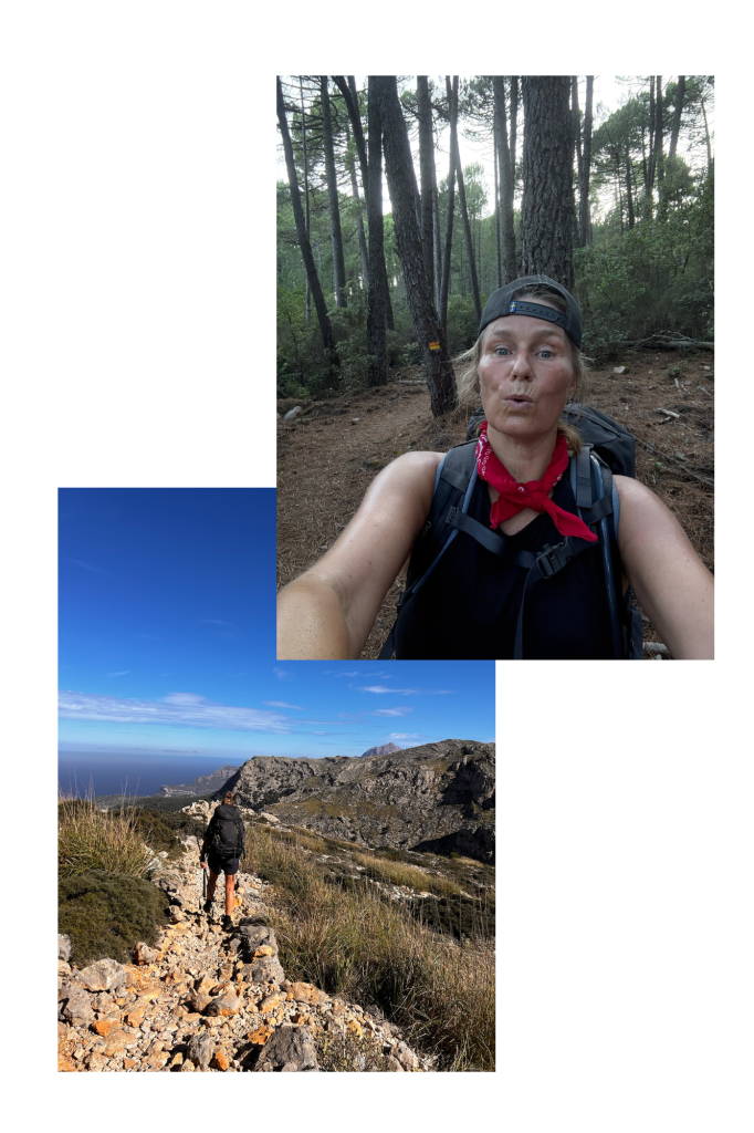 Jeg hedder Randi Rix og jeg er skaberen af Kvinder Alene. I mere end 10 år har vandring været en essentiel del af mit liv. Jeg har krydset Sverige til fods, gået Caminoen, vandret på tværs af Korsika og fulgt bjergkæderne på langs af Mallorca – og hver eneste tur har mindet mig om, hvor stærkt naturen kan påvirke både kroppen og sindet.